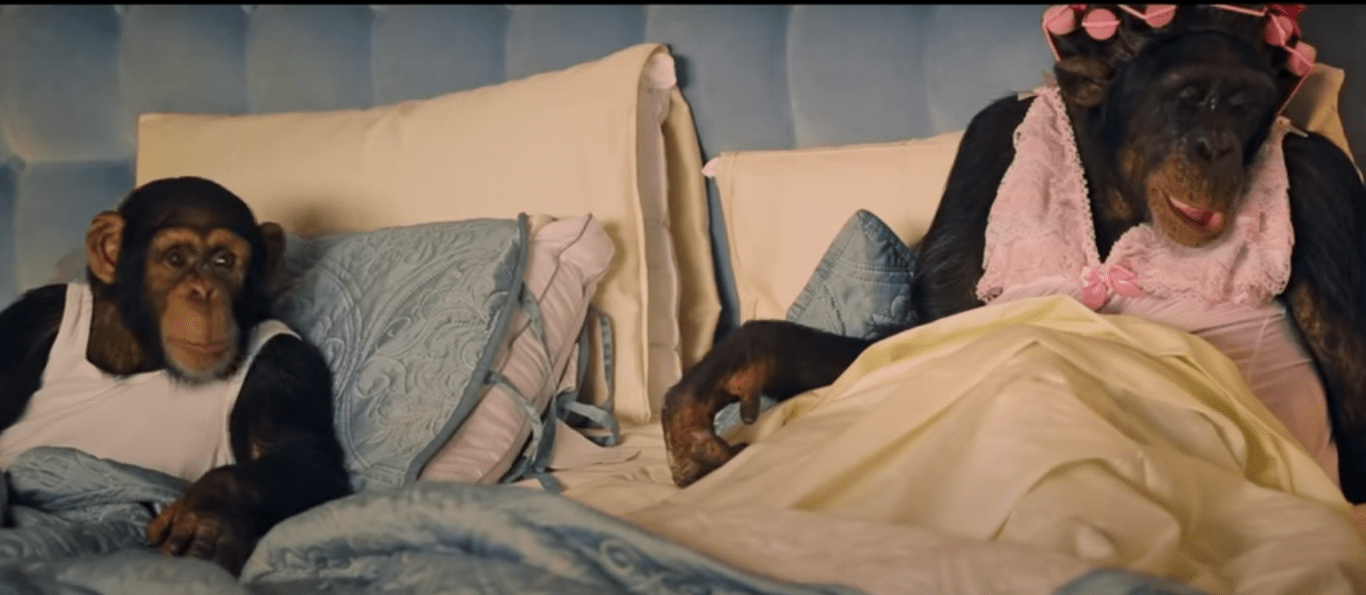 El vídeo está protagonizado por una pareja de chimpancés que reproducen comportamientos antinaturales para su especie, además de sexistas